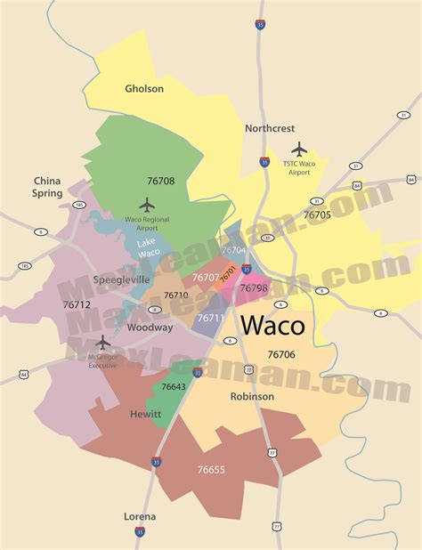 Waco Texas Zip Code Map TEXASXO